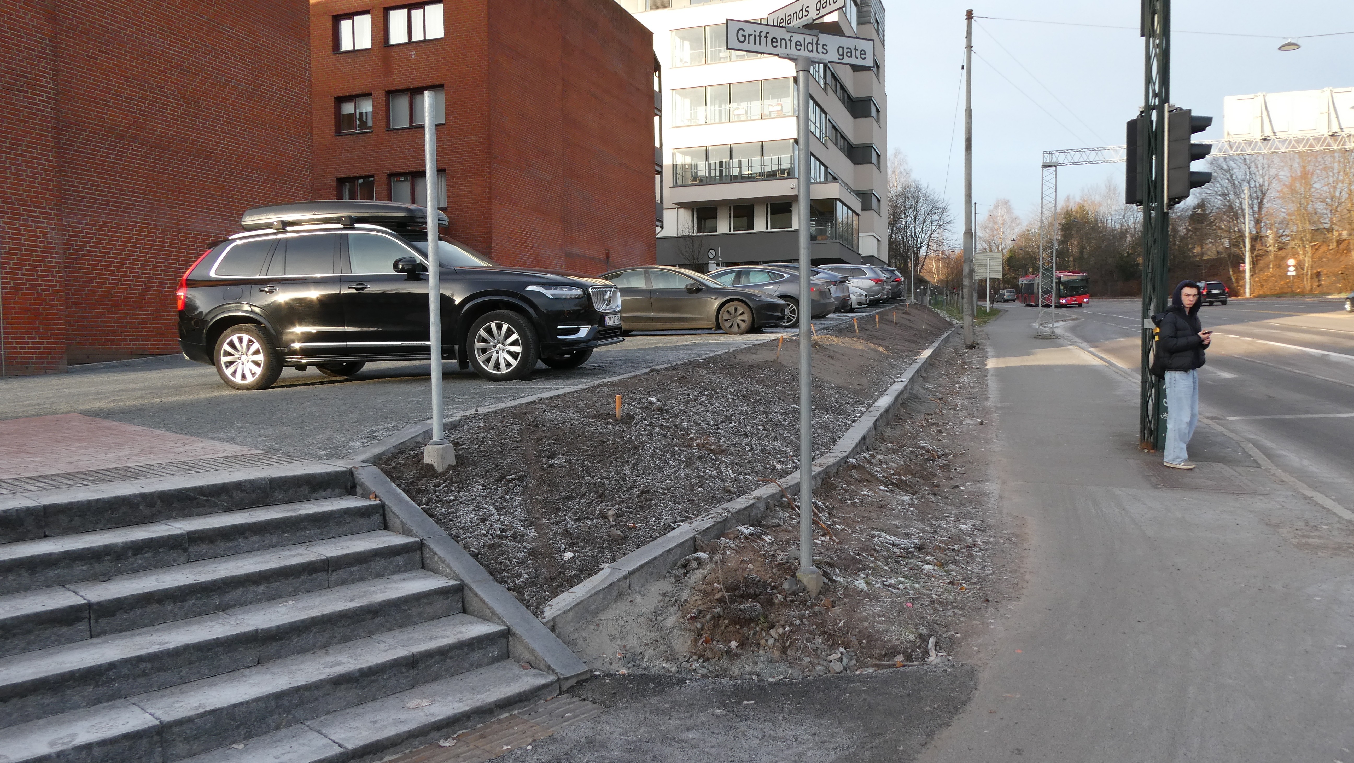 Lovisenberg utformes som stor institusjonspark rundt Norges største private sykehus. Arkitekt Rivertz' parkeringsplass ble parkmessig opparbeida høsten 2025. Pukk fra Fornebutunnelen danner et solid fundament; larvikitt som kantstein og trapper skaper kvalitet; rød betongstein fra ASAK lager kontrast; og stabilisert grus fra Bærum som dekke; gjør dette om til en parkeringspark. Tre trapper skaper nye, populære snarveier, som umiddelbart er tatt i bruk. Det skal utelukkende plantes kortreiste planter fra vår plantegeografi: 12 lønnetrær fra Vestby; to søtkirsebær fra Son; åtte geitved fra Åmål; 55 dvergmispel fra Innerdalen i Nord-Østerdal; 25 eføy fra Østfold; og 3 000 storkenebb og marinøkleblom, plantes våren 2026, som gjør dette til en norsk parkeringspark.