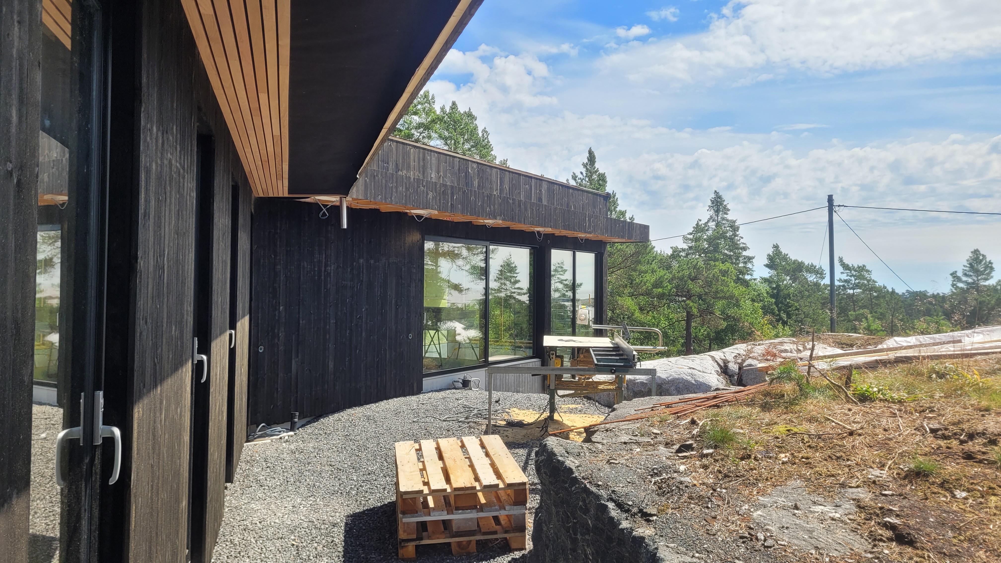 Lønnungen er en bukt helt ytterst mot småbåtleia i Bamble kommune. Hyttetomten består av en kolle med utsikt mot Lønnungen og horisonten i Skagerrak. Hytta er plassert rundt og i bakkant av toppen på kollen, og har form som en åpen vinkel. Det gir gode utsikts- og solforhold gjennom det meste av dagen. Kollen med fjell i dagen blir midtpunktet på tomten, og ligger cirka en meter høyere enn terrassegulvet. Planløsningen til hytta er kompakt med adkomst fra nordsiden, felles oppholdsrom mot sør og en soveromsfløy mot vest.