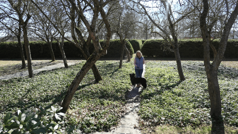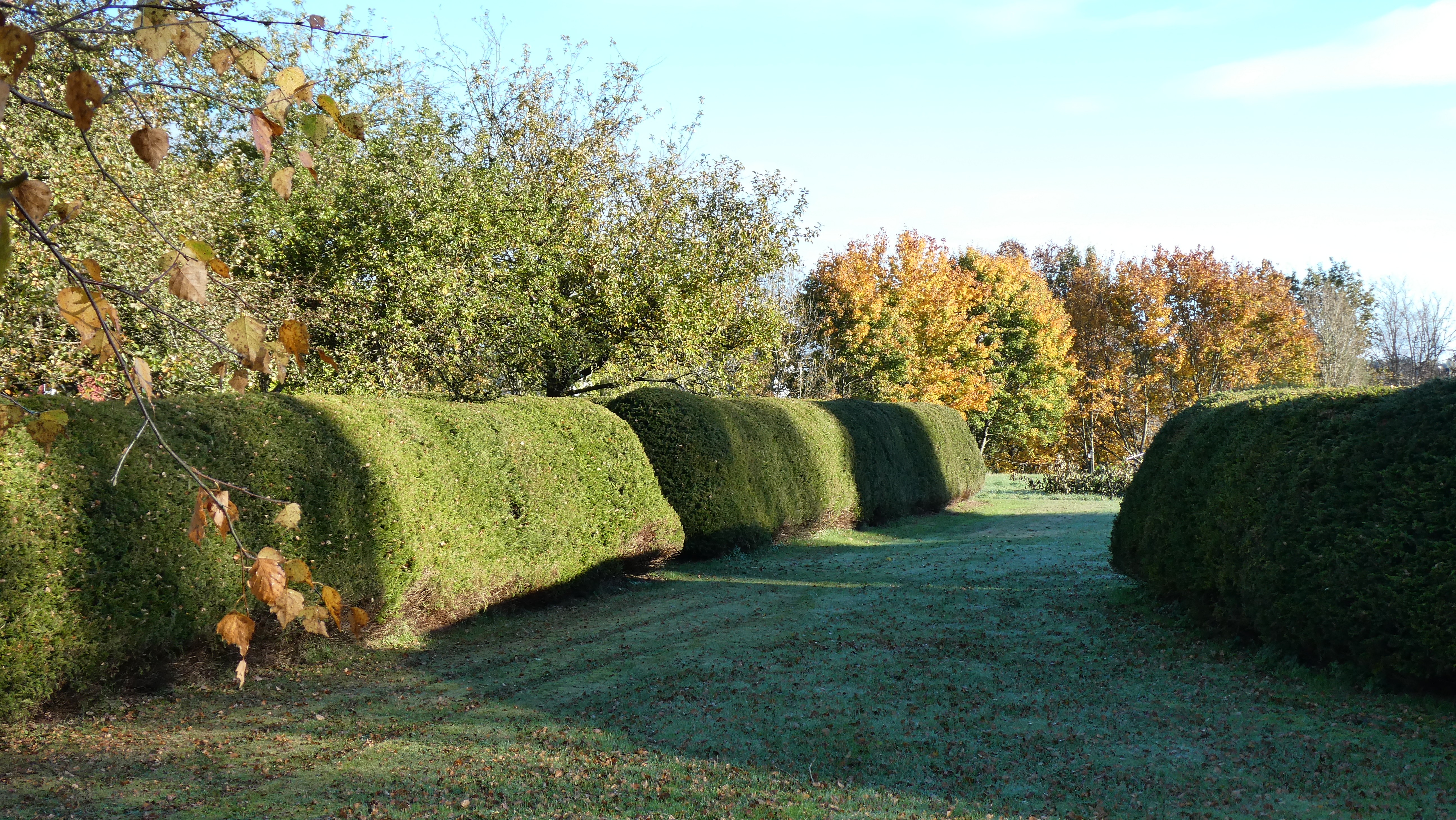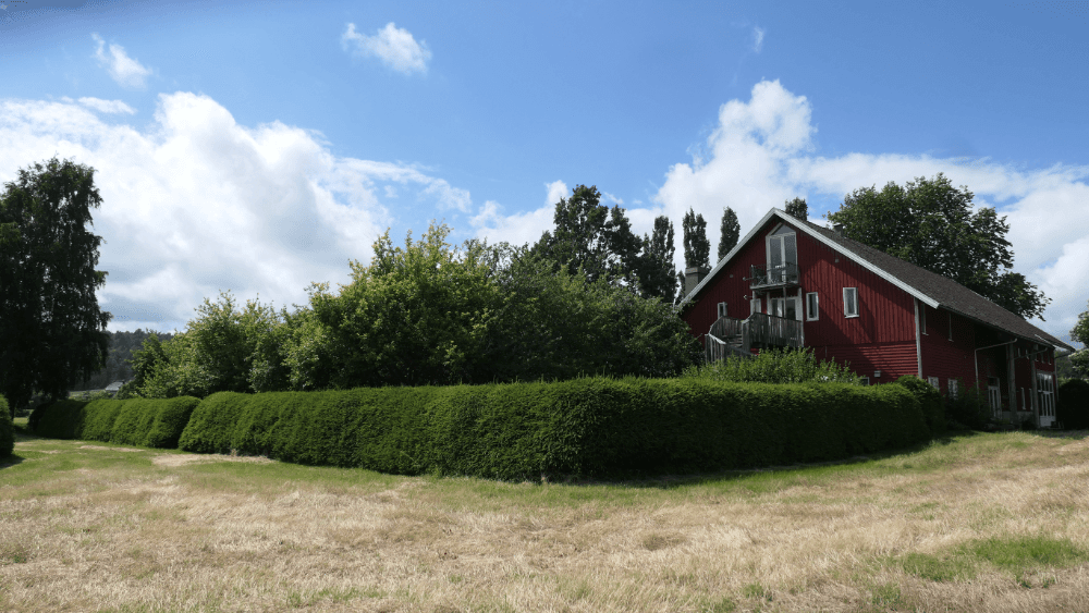 Plantinger av edelløvtrær skaper dramatiske landskapsrom i det gamle kulturlandskapet. Et stisystem med rotekte kirsebærtrær inviterer oss ut i det vestfoldske jordbrukslandskapet. Parkeringsplassene har kortreist grus med asketrær fra stedet. Ellers er alle trær og busker henta fra stedet.